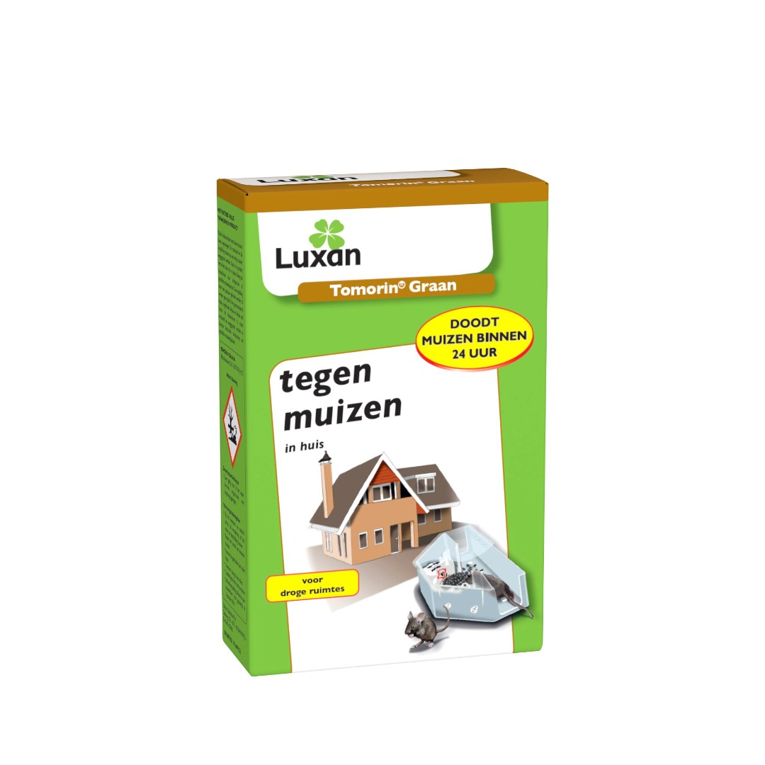 Luxan Tomorin Graan is een kant en klaar lokaasdoosje met gif tegen huismuizen. In de verpakking bevindt zich een doorzichtig plastic voerdoosje gevuld met Tomorin graan. Aangezien de voerdoosjes van doorzichtig plastic zijn is het goed te zien of het gif opgegeten is. Luxan Tomorin Graan is een acuut werkend rodenticide en eenmalige opname is bijna altijd effectief door de hoge concentratie werkzame stof. De werkzame stof wijkt ook af van bijna alle andere soorten verkrijgbare gif en de kans op resistentie is dus klein.